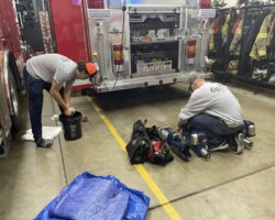 This evening, the volunteers stayed in from training to focus on doing a general cleanup of the apparatus and the garage. All equipment was removed from the vehicles, compartments were wiped clean, outriggers on the ladder truck were cleaned and greased, equipment was detailed and everything was placed back on the apparatus in a clean, orderly fashion! The trucks were then washed and the garage was cleaned up as well! The entire place smells like Simple Green! #FirefighterPride #Cleaning