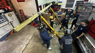 Tonight, the firefighters of Cherry City honed in on their skills utilizing the Paratech Rescue Struts. These struts are specially designed for quick stabilization of structures, vehicles, trenches and a host of other things. These struts can also be utilized as a tripod… for instance if you have someone trapped in a manhole, this is a quick and stable system to assist with lowering and raising rescuers, equipment and victims.